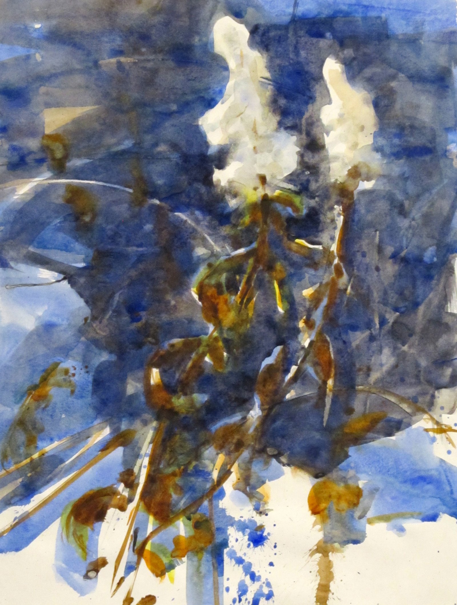 Brush drawing of faded goldenrod stems and flowers, Winter 2018.