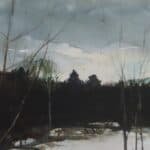 Inhabiting the studio after our student painters left this evening, and listening to my new favorite alto player, David Sanborn…”Hearsay.” And John McLaughlin with the Joe Farrell Quartet…Farrell, Chick Corea, Dave Holland, and Jack de Johnette…”Follow Your Heart.” My contribution: “24 Narcissus,” watercolor on Strathmore sketch, 18″ X 24.” My term for this kind of spontaneous, direct brush drawing is the “big brush exercise.” I’m finding that doing them builds skills, perceptual abilities, and stamina in a lot of areas where a watercolor painter needs those things. For example: the ability to translate “forms” into “flat pieces;” the ability to pre-visualize and map out the placement of major shapes without any preliminary drawing; and of course, the ability to render forms directly with the brush.